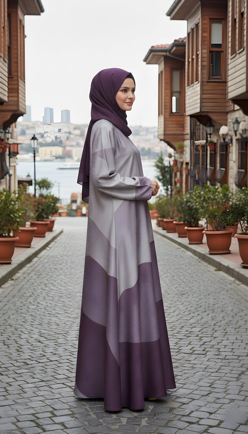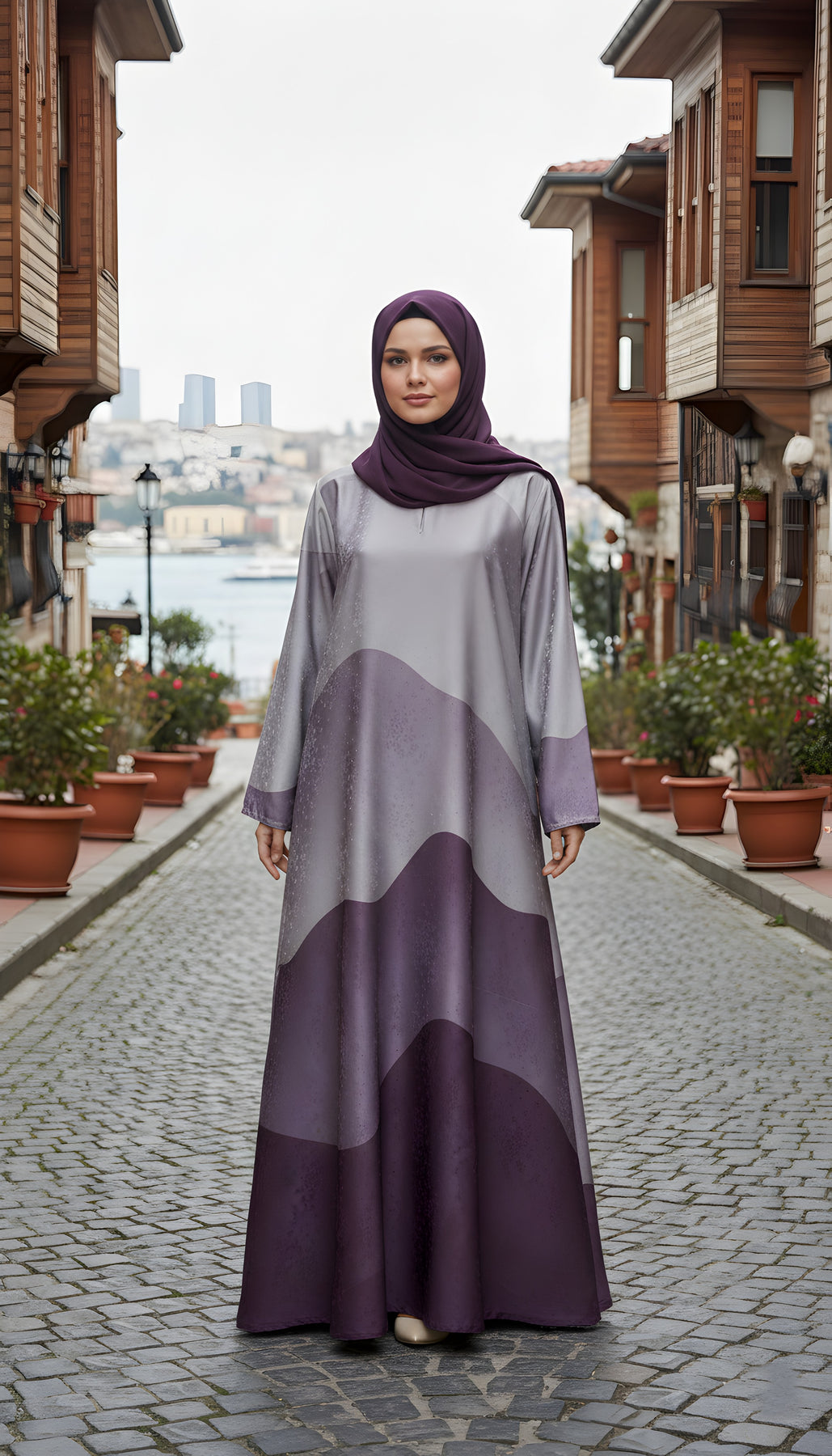 Gracefully fluid with cool-toned sophistication, this Tonal Lavender Maxi Style Abaya is a refined expression of modern modest elegance. Crafted from a softly textured fabric, the design showcases artistic tonal paneling in layered grey shades, creating depth, movement, and a naturally flowing silhouette. Its airy drape and minimalist construction make it ideal for women who appreciate calm, contemporary style with understated luxury.