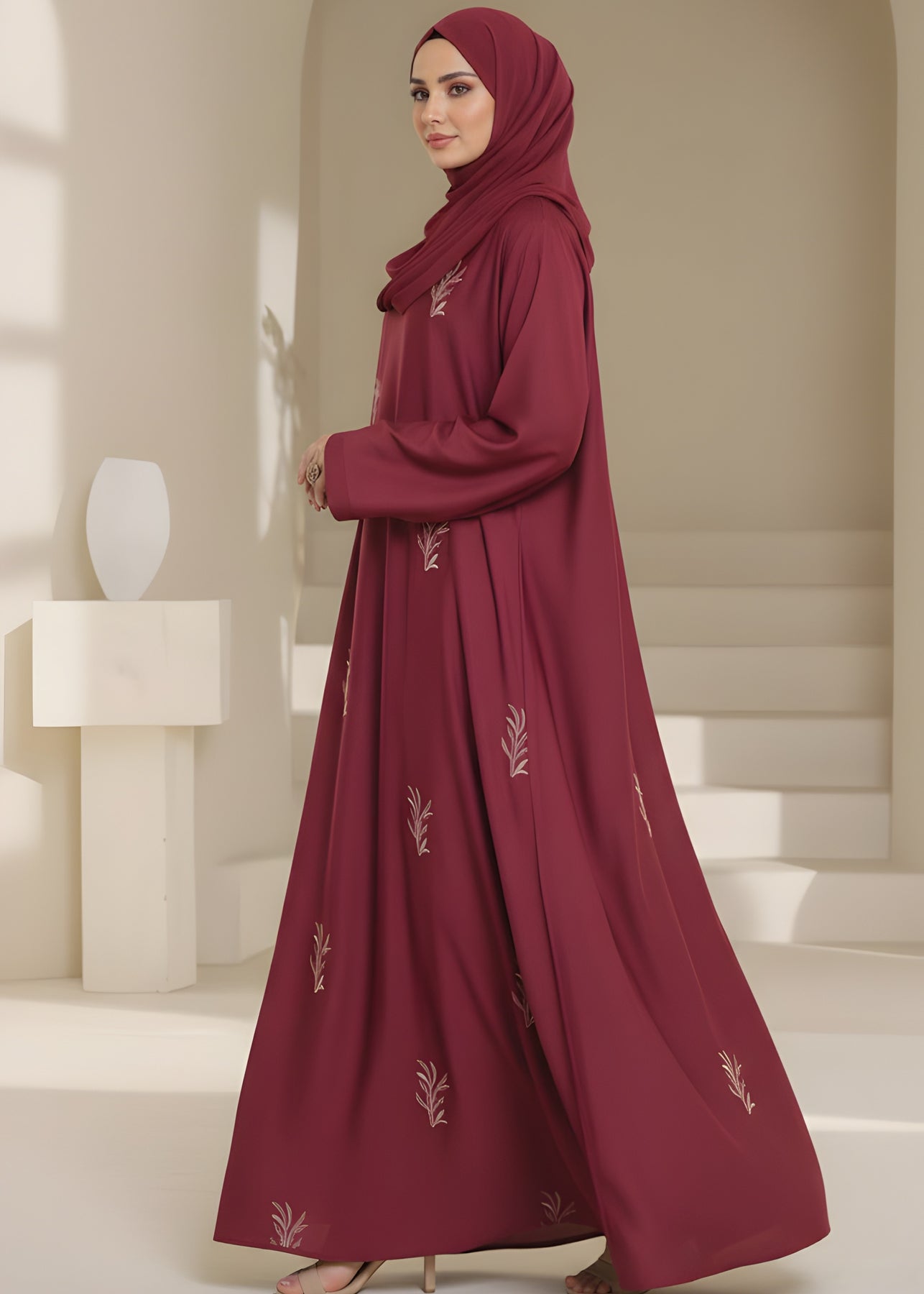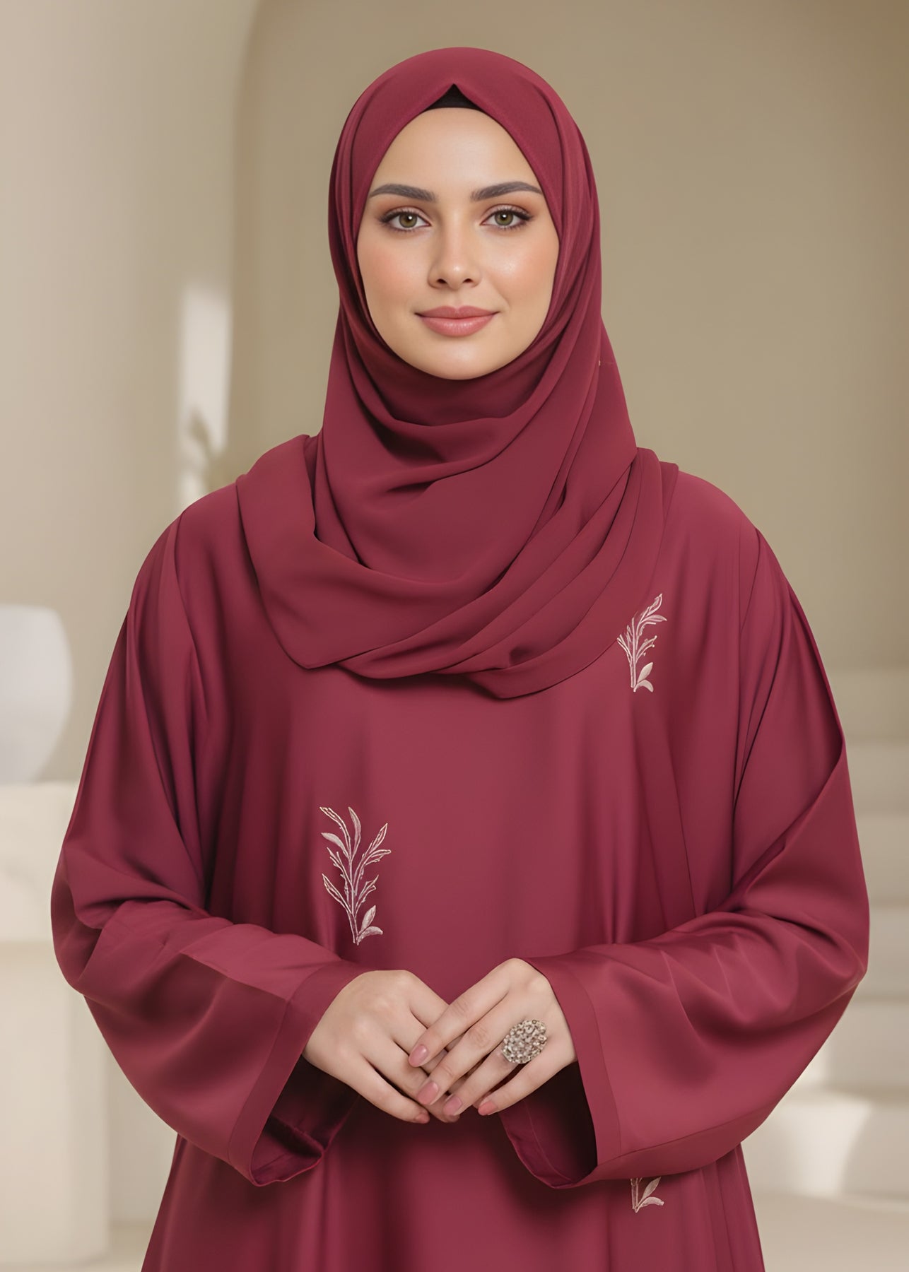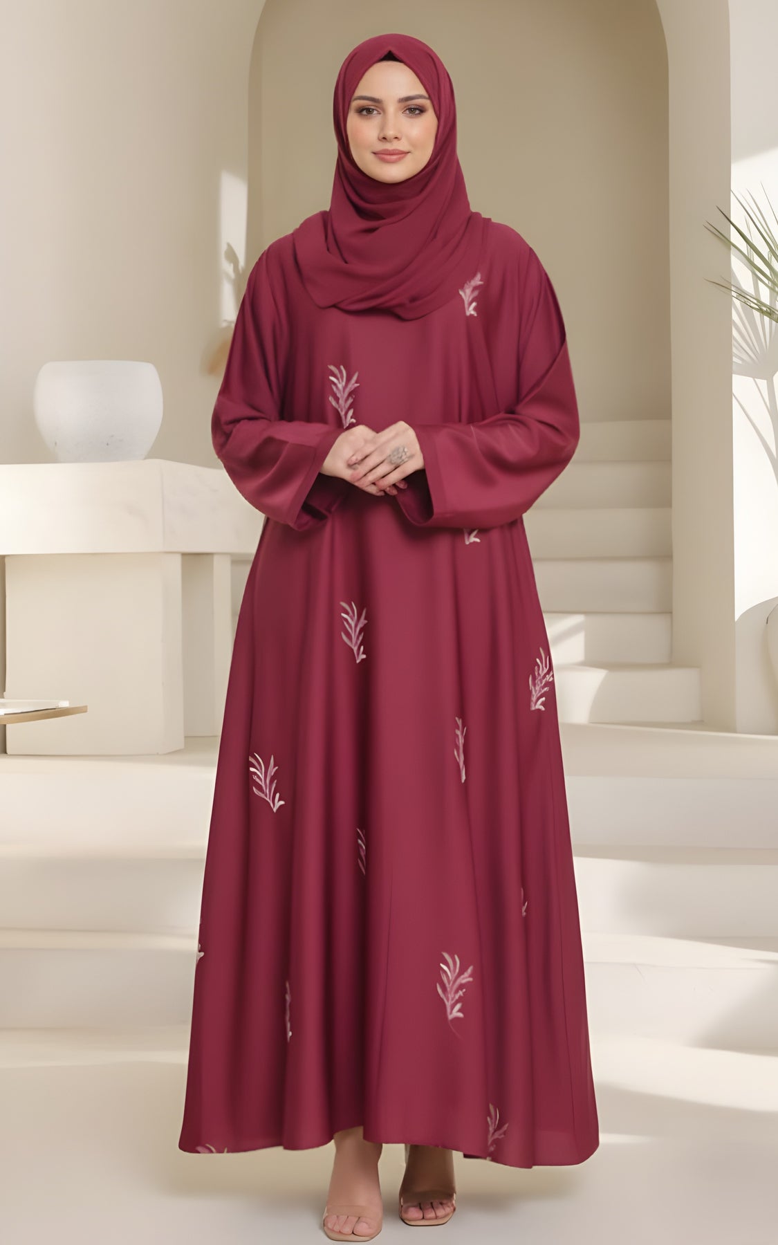 Turn heads with effortless elegance in our luxurious maroon embroidered abaya. Designed for the modern woman who values both style and modesty, this abaya combines sophistication with comfort.