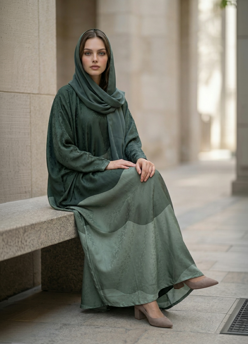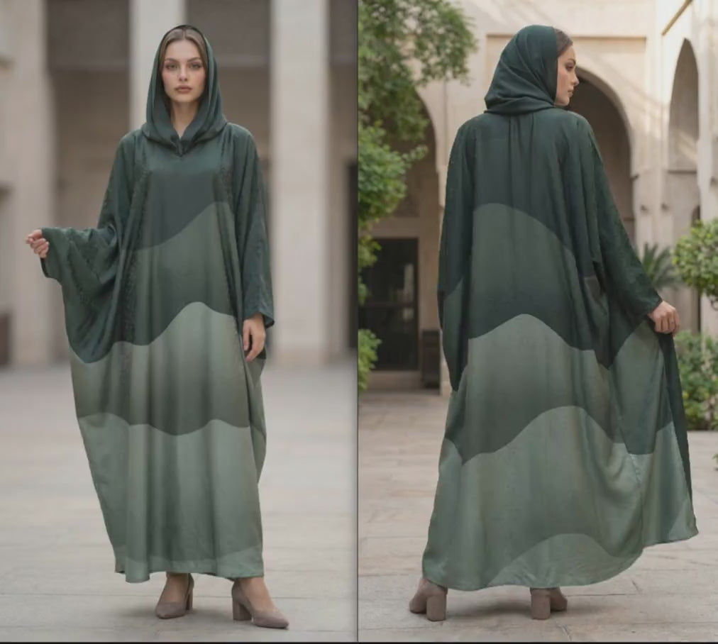 Soft, serene, and thoughtfully designed — this Tonal Green Maxi Abaya is a perfect blend of contemporary modest fashion and graceful sophistication.