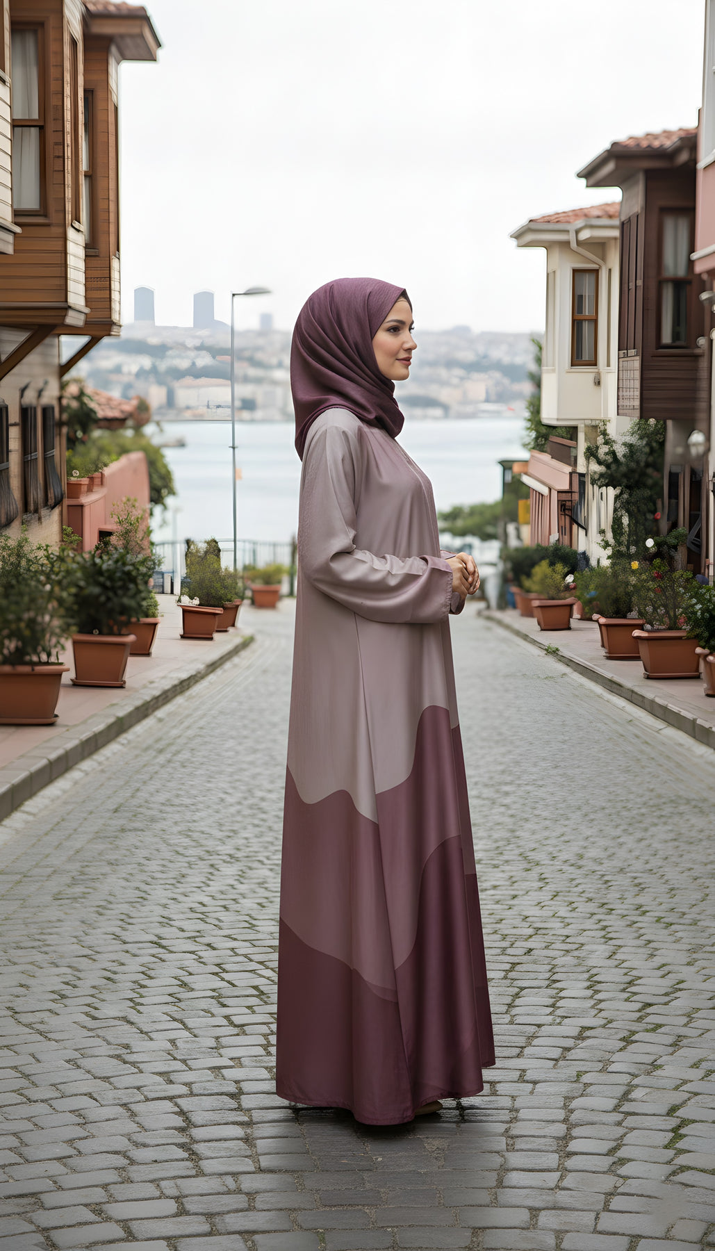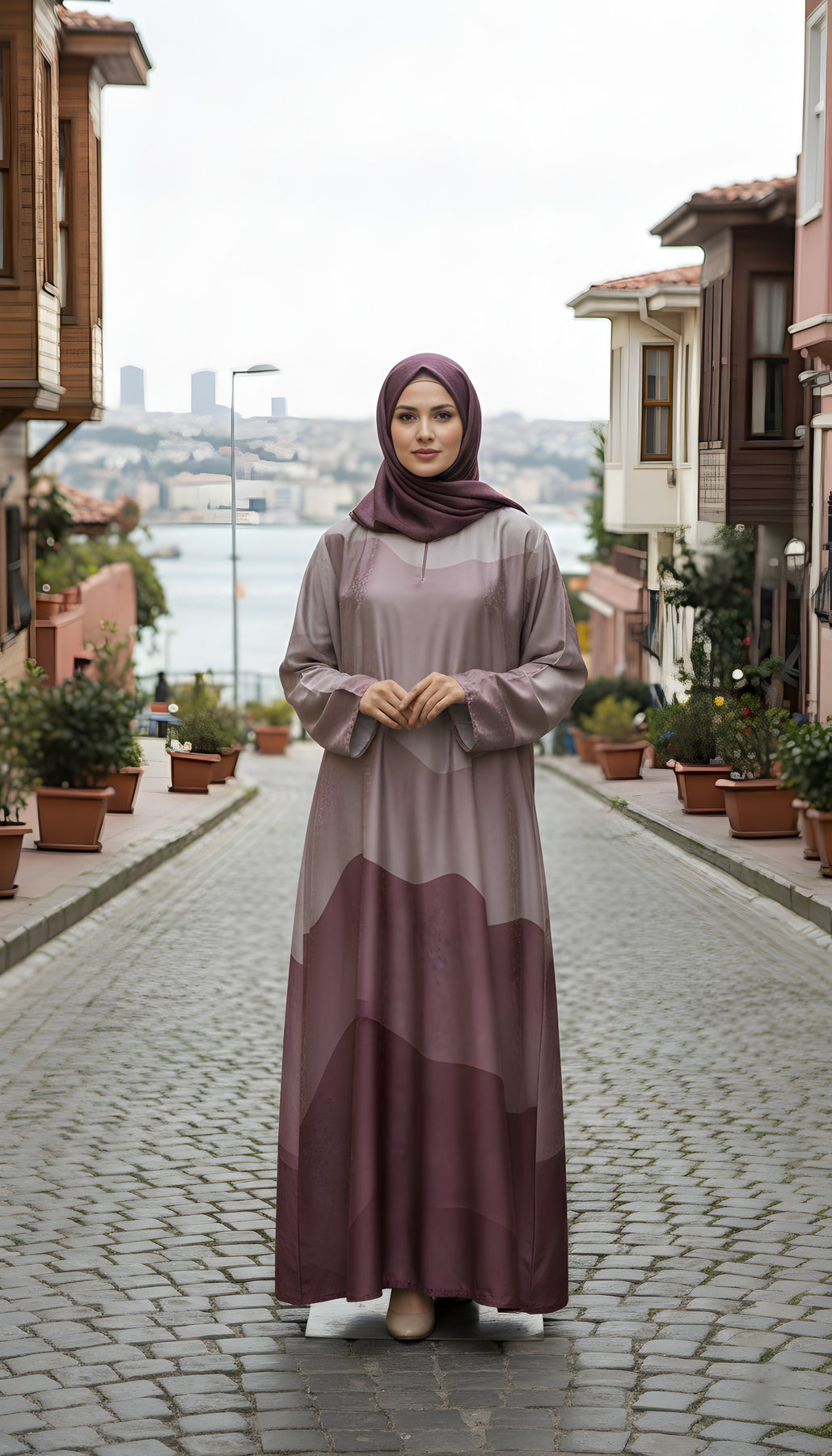 Soft, serene, and thoughtfully designed — this Tonal Plum Maxi Abaya is a perfect blend of contemporary modest fashion and graceful sophistication.