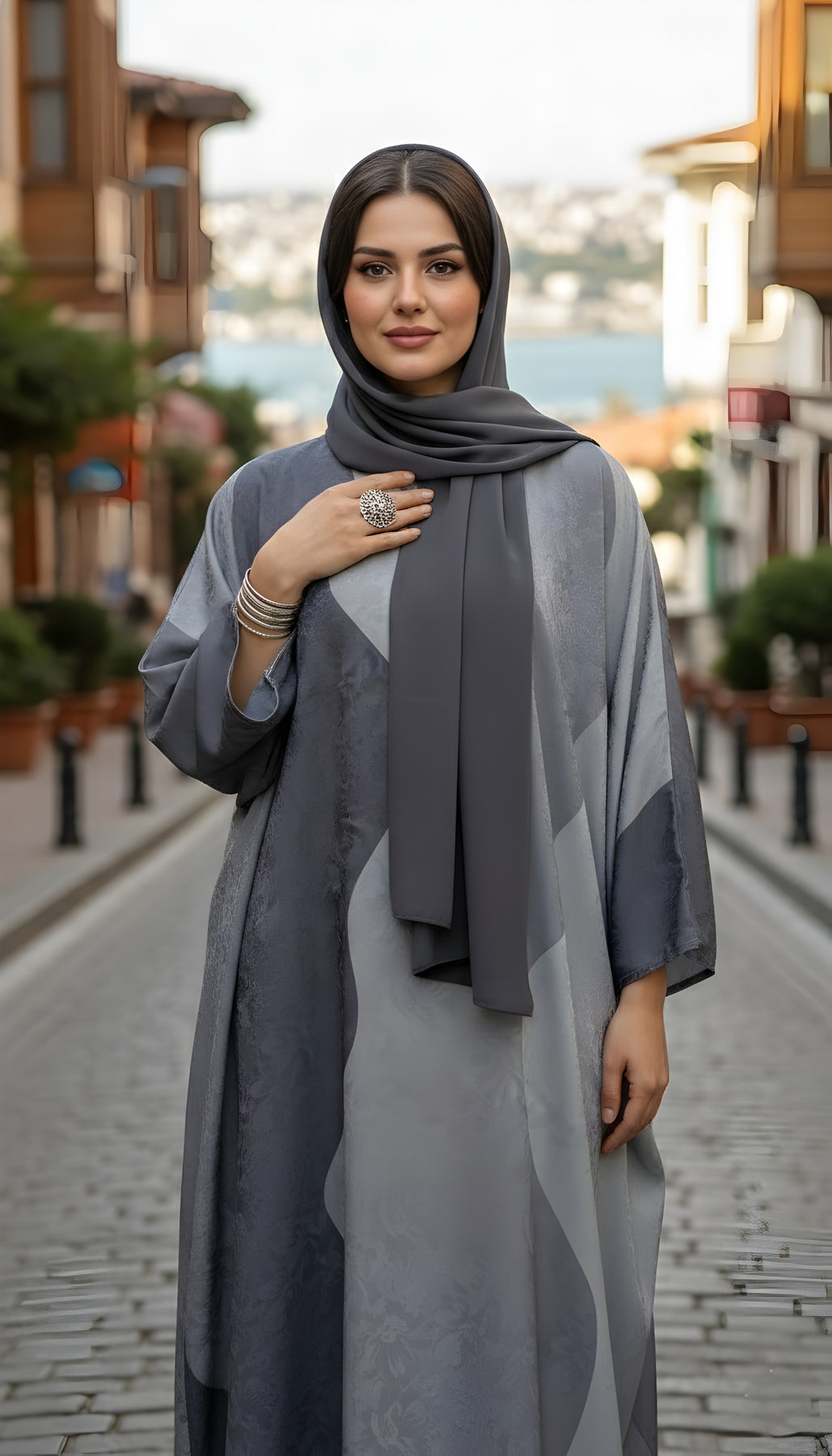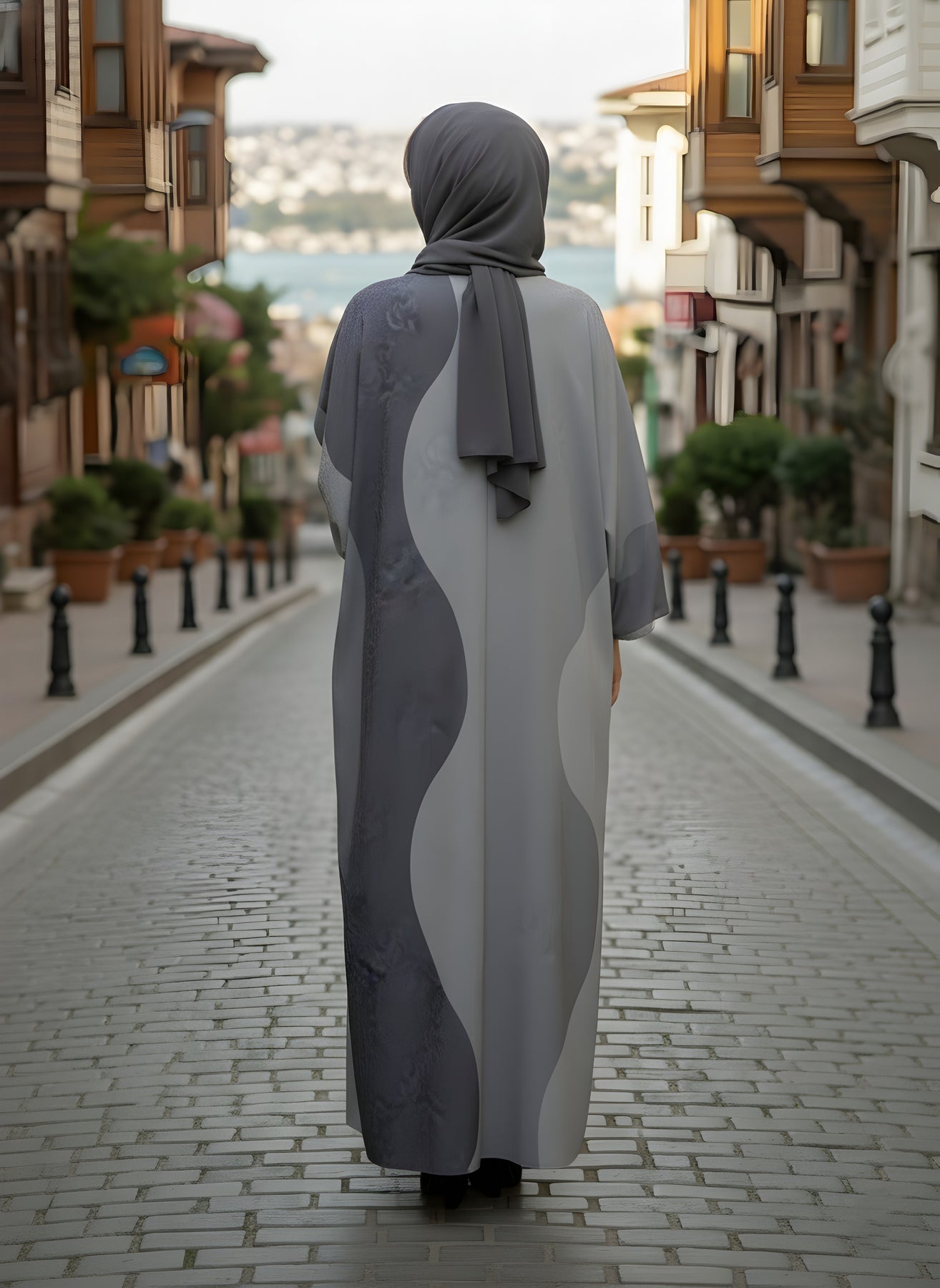 Gracefully fluid with cool-toned sophistication, this Tonal Grey Maxi Style Abaya is a refined expression of modern modest elegance. Crafted from a softly textured fabric, the design showcases artistic tonal paneling in layered grey shades, creating depth, movement, and a naturally flowing silhouette. Its airy drape and minimalist construction make it ideal for women who appreciate calm, contemporary style with understated luxury.