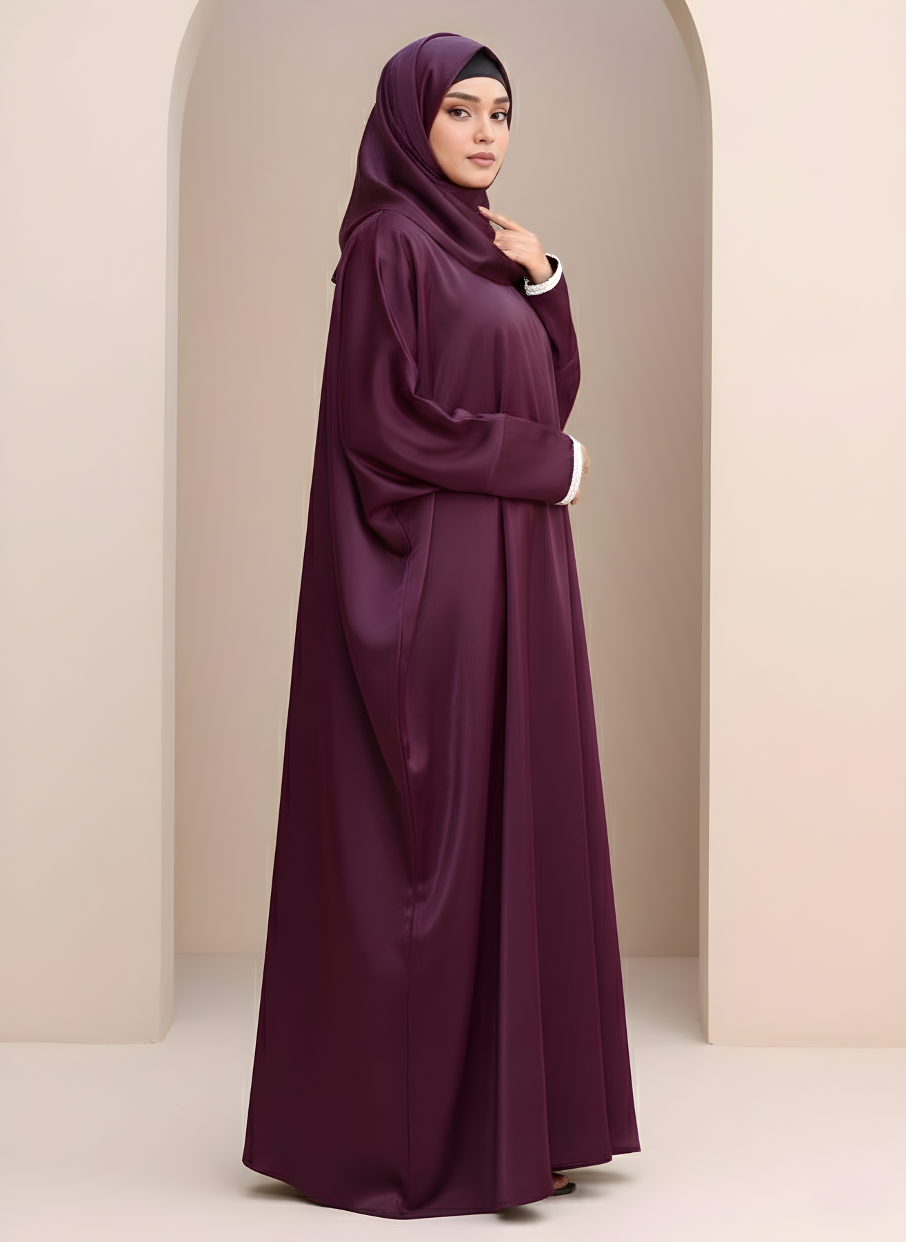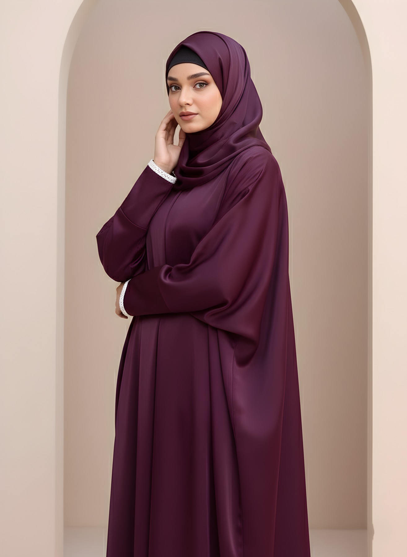 Discover the elegance of understated luxury with this deep plum abaya, crafted for women who value refined modesty and effortless grace. With its fluid drape and rich, earthy tone, this piece embodies calm confidence and timeless sophistication.