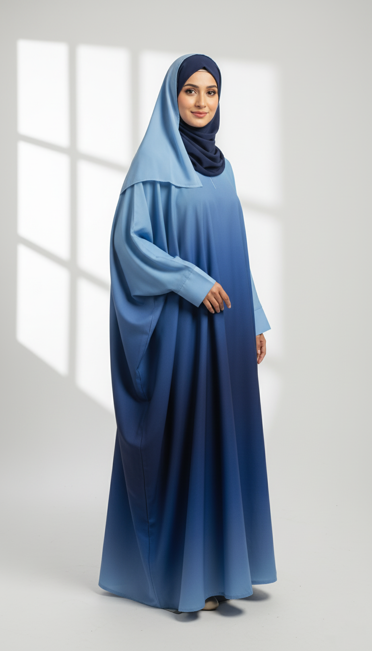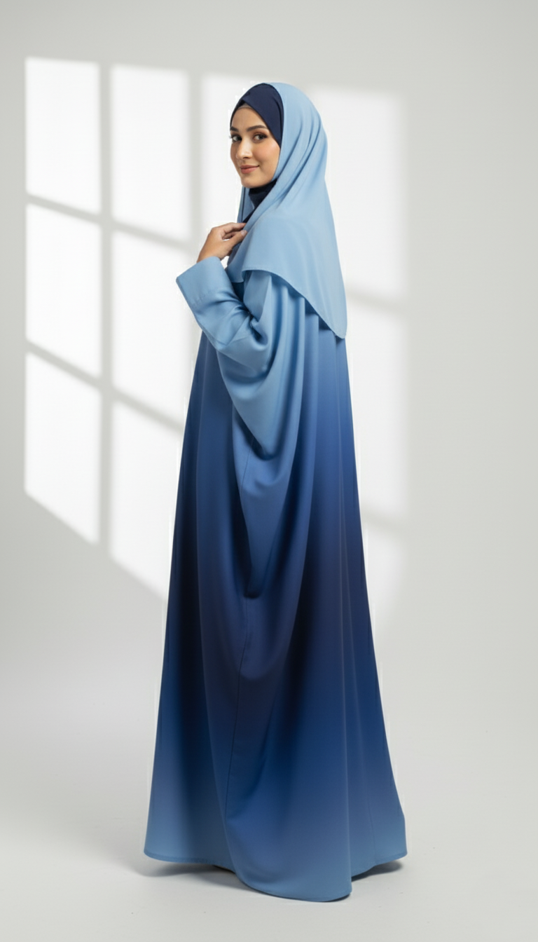 Elevate your modest fashion with the Urban Blue abaya — a perfect fusion of grace and comfort. Designed in a close-front, baggy silhouette, this piece flows effortlessly, offering a relaxed yet refined look. Made from premium soft-flowing fabric, it drapes beautifully with every movement. The rich blue hue adds a calm, sophisticated touch, making it ideal for both everyday wear and special gatherings, comes along with matching scarf.