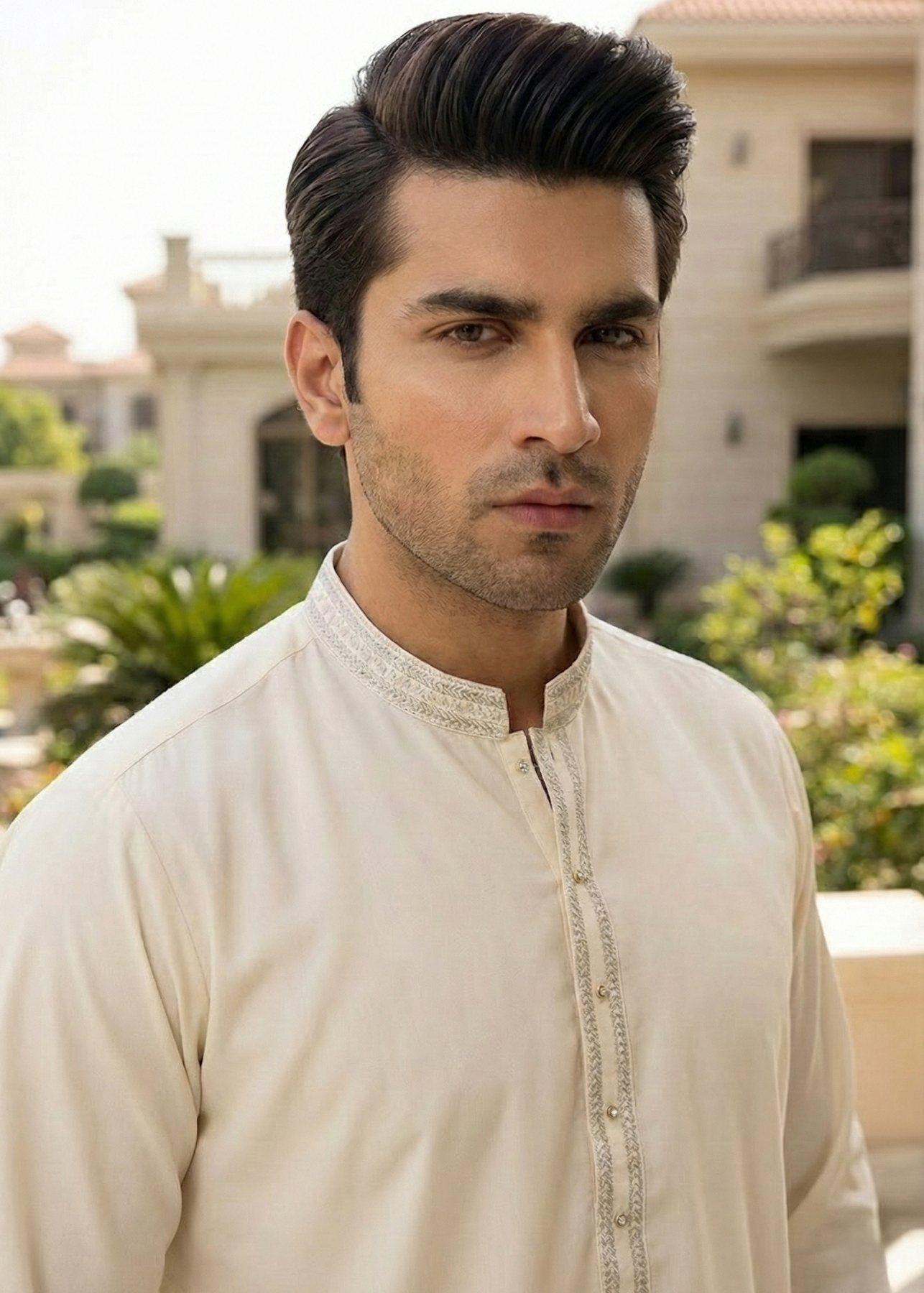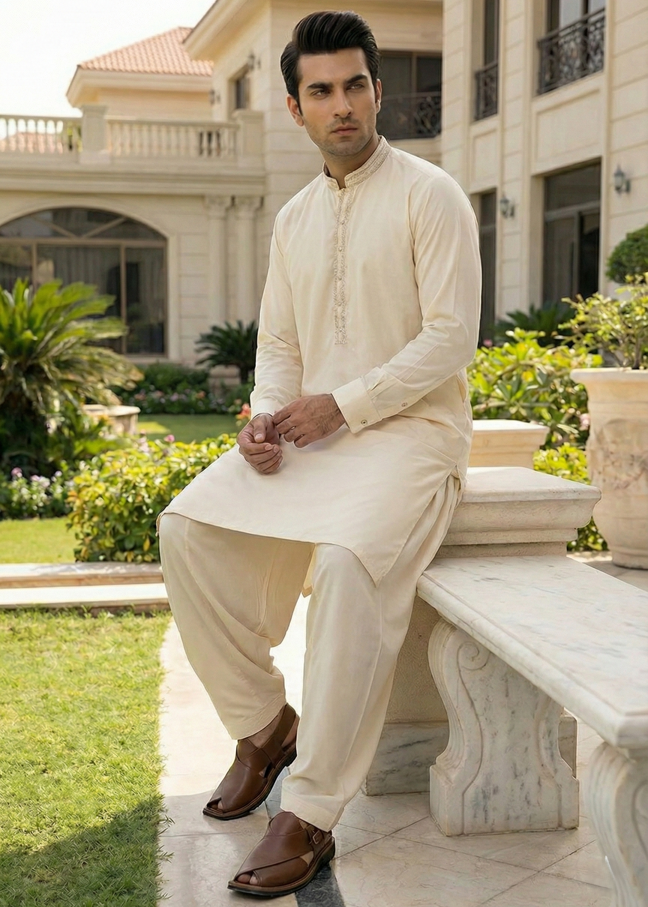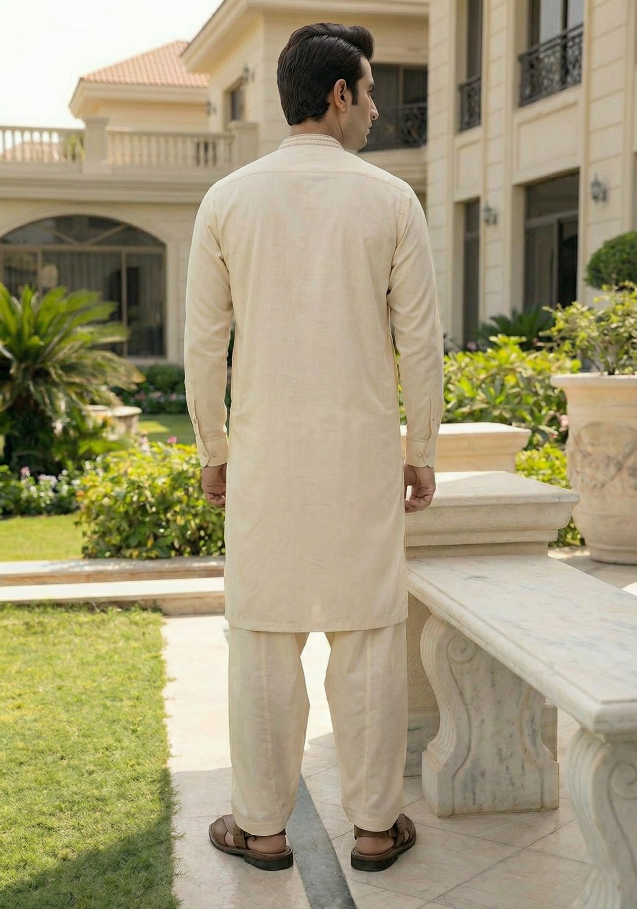 Men's Formal Kameez Shalwar with Embriodery on Collar and Placket.