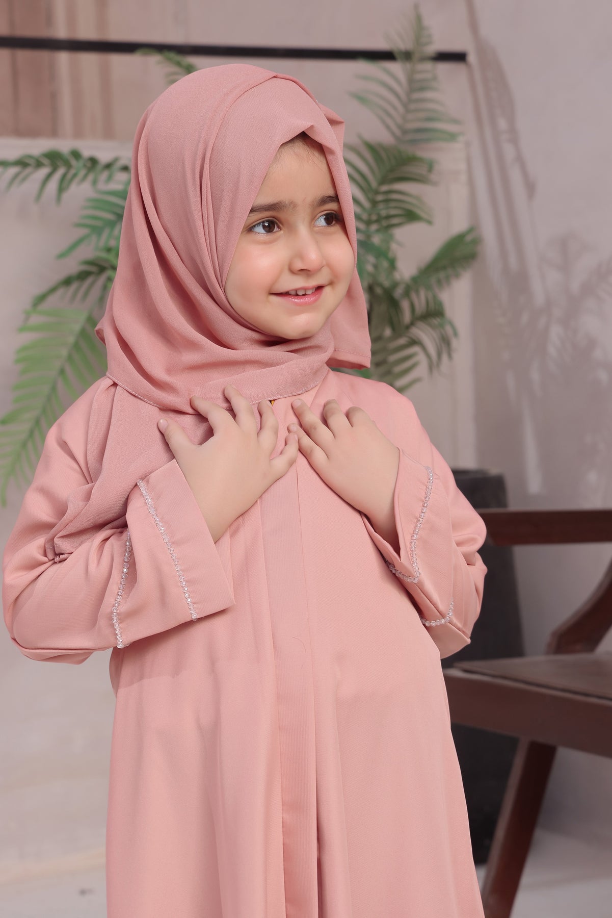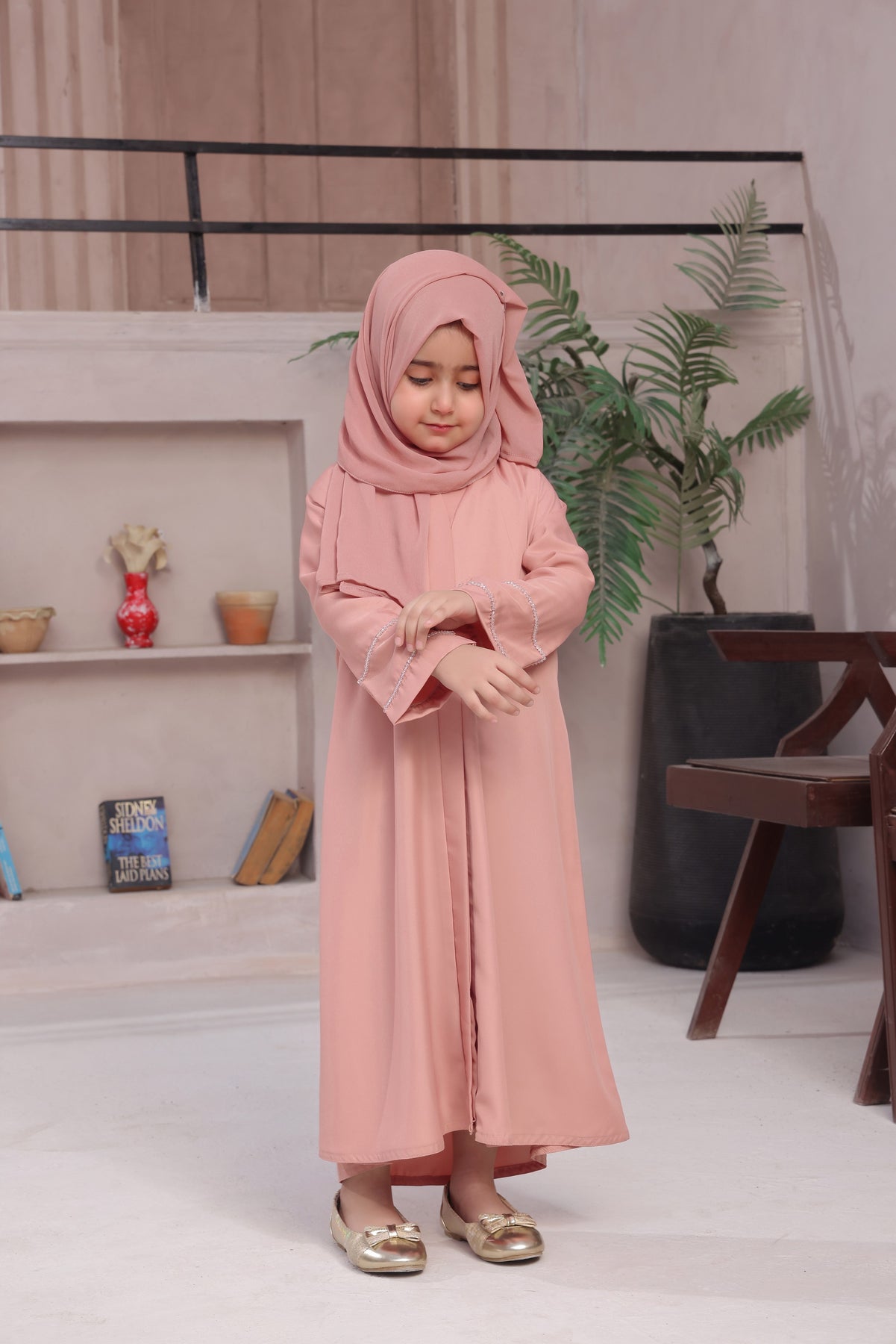 Our beautiful front open style abaya is a popular one these days stone work bunch all over front and sleeves making it gorgeous whenever you wear comes along with pure Korean chiffon matching Sheila