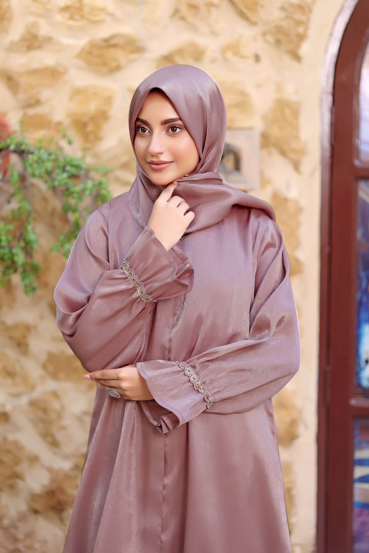 Crafted in a soft tone, this abaya features a beautifully flowing front-open silhouette that drapes effortlessly, creating a look that is both modest and modern. The wide, statement lace on sleeves add a touch of contemporary style while maintaining the classic charm of traditional abaya design.