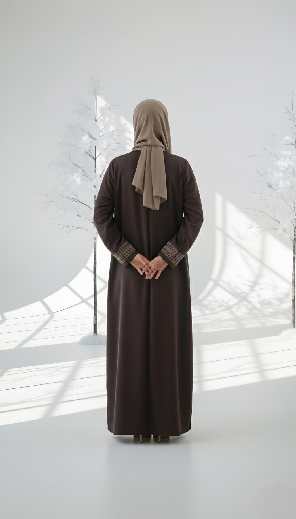 Classic elegance meets everyday comfort with our Marabelle Brown Abaya. Crafted from premium Nidha blend, this abaya drapes beautifully and feels luxuriously soft against the skin. The Open-front design is modest yet stylish, while the embroidered cuffs add a refined detail that elevates the overall look. Designed in a rich brown shade, it’s the perfect balance of sophistication and versatility.