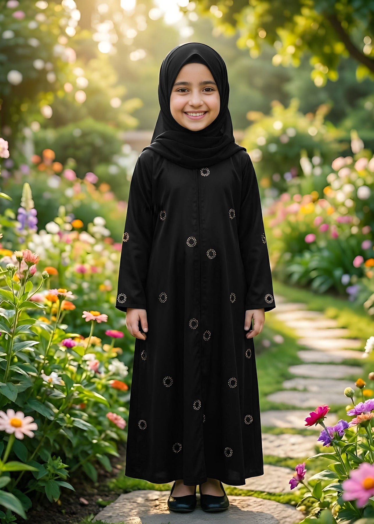 Our beautiful front open style abaya is a popular one these days stone work bunch all over front and sleeves making it gorgeous whenever you wear comes along with pure Korean chiffon matching Sheila