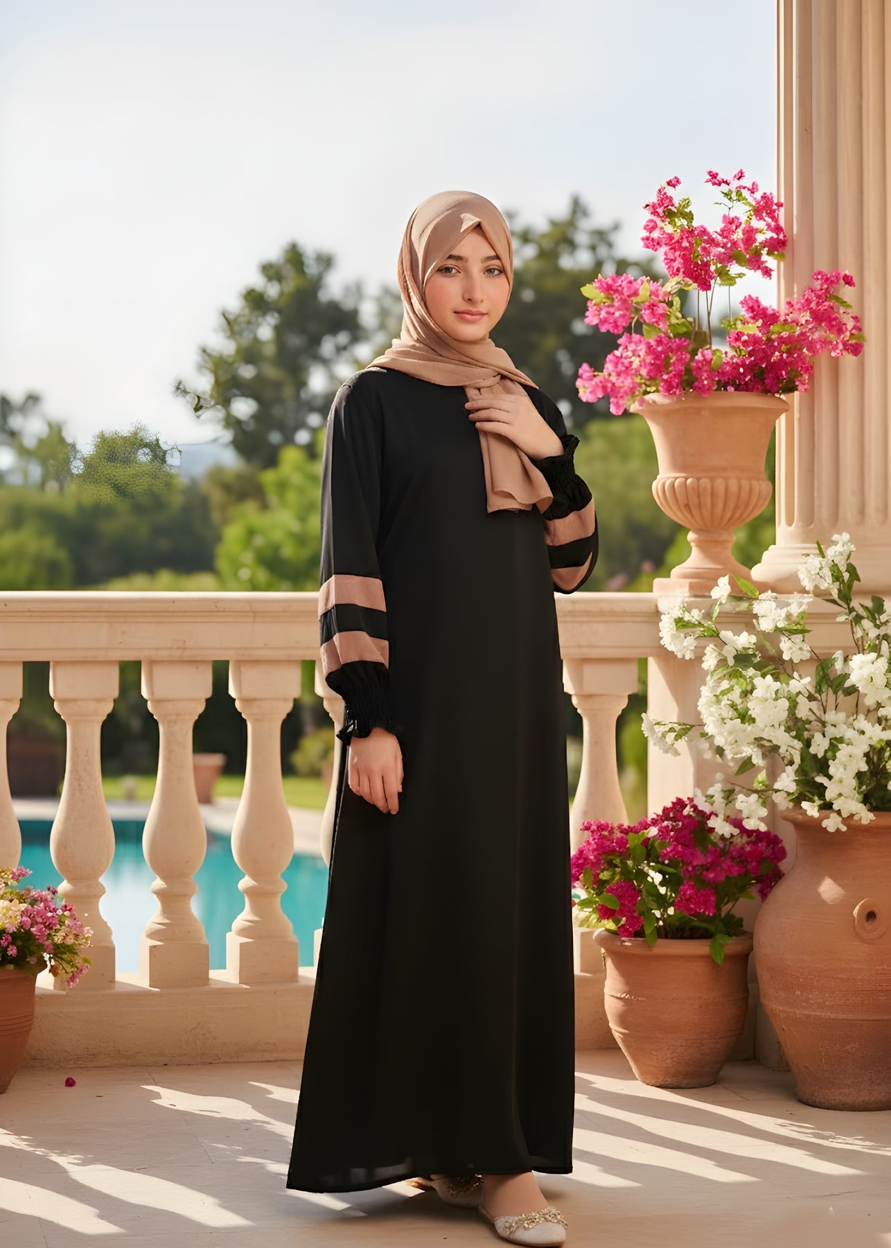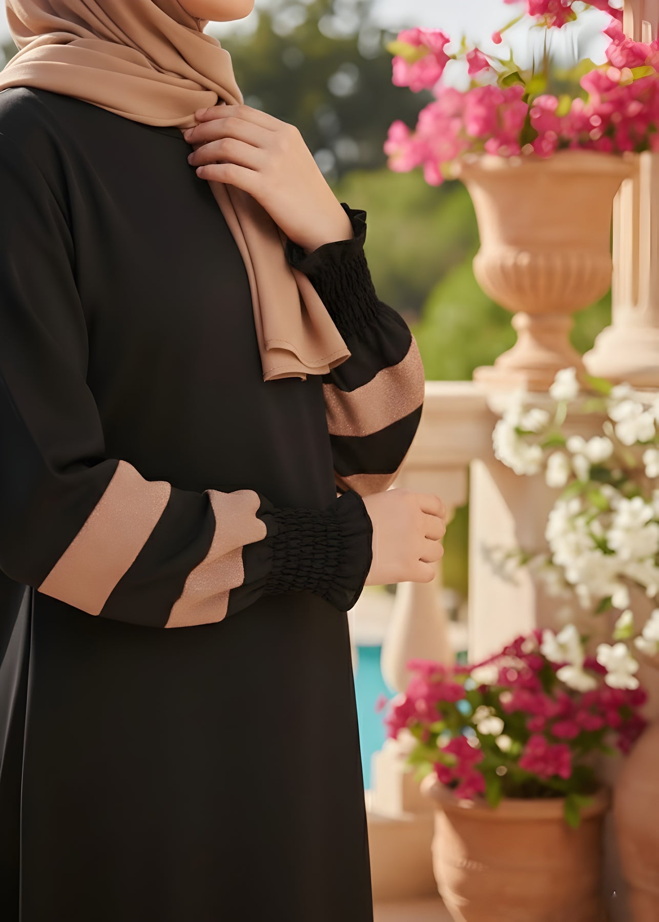 This is a must for your wardrobe collection with our new latest colors which is  breathtaking and ultimately gorgeous which is our hot sellers these days front open style abaya and elastic sleeves attached on it which comes along with pure Korean chiffon Sheila