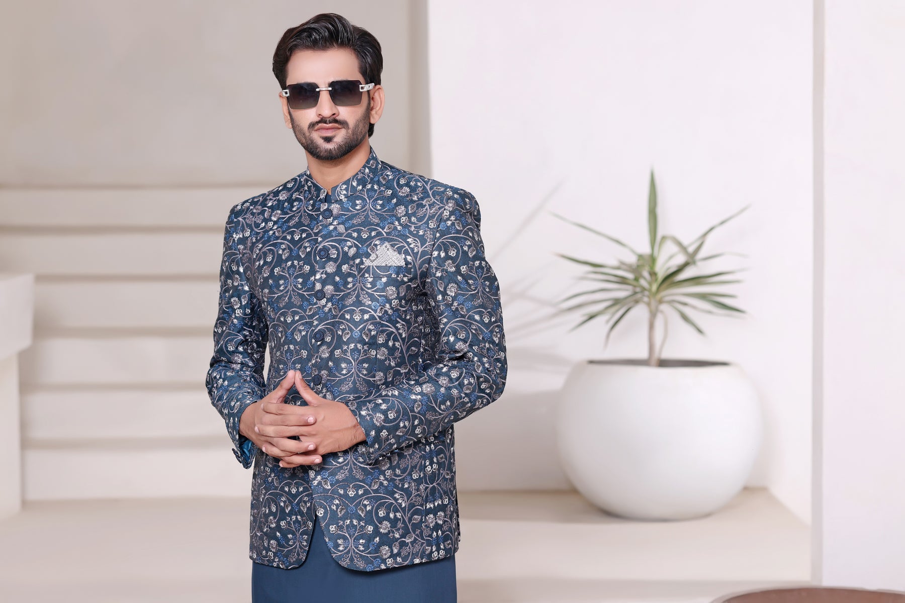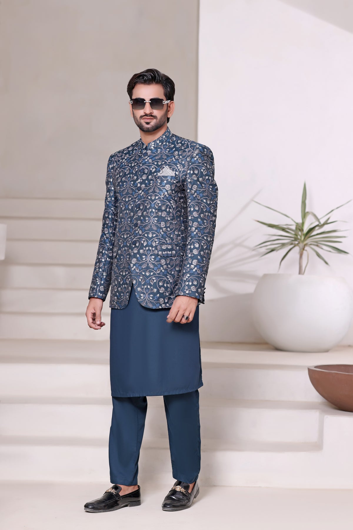 Men's Formal Embroidered Prince Coat with Matching suit.