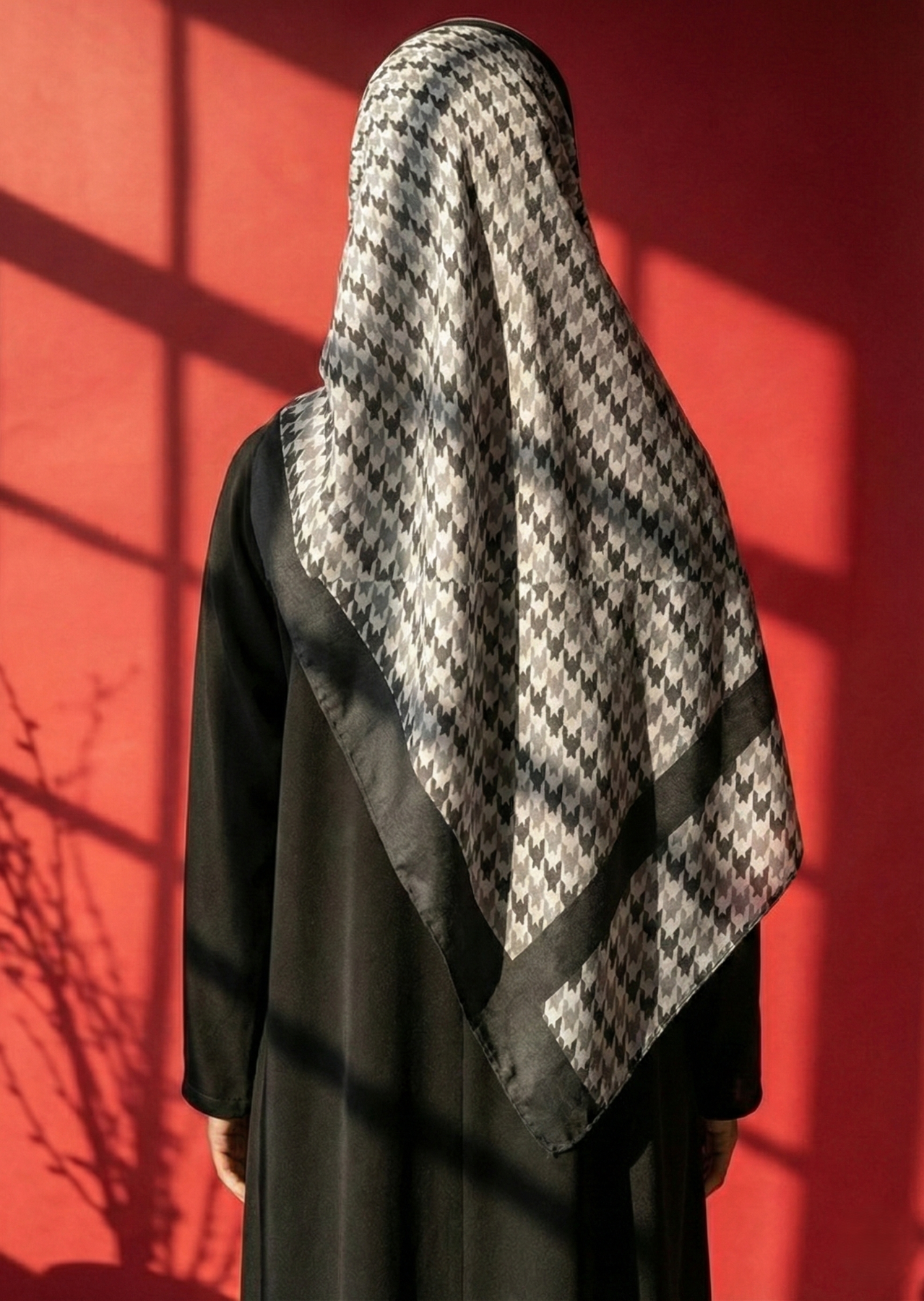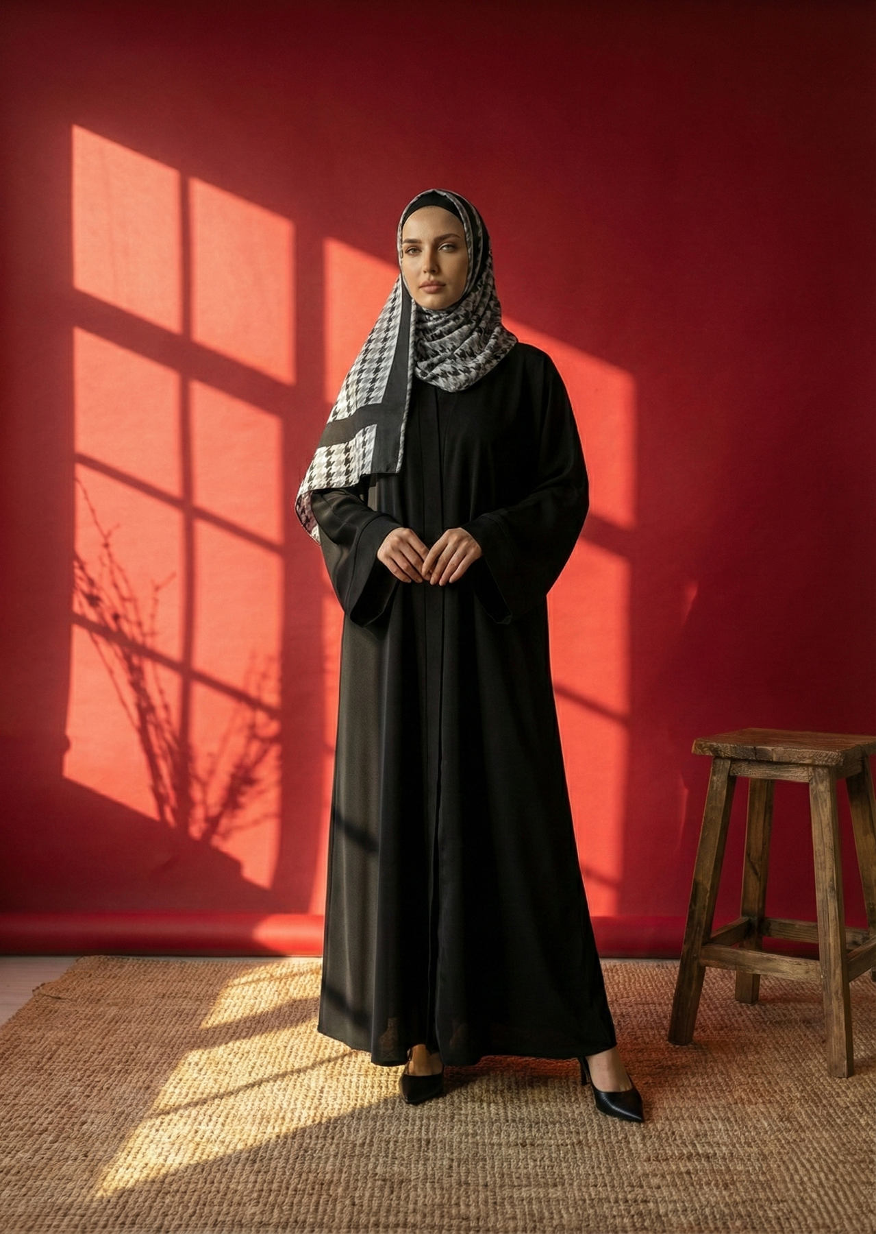 A bold monochrome statement — where modern geometry meets timeless modest elegance.