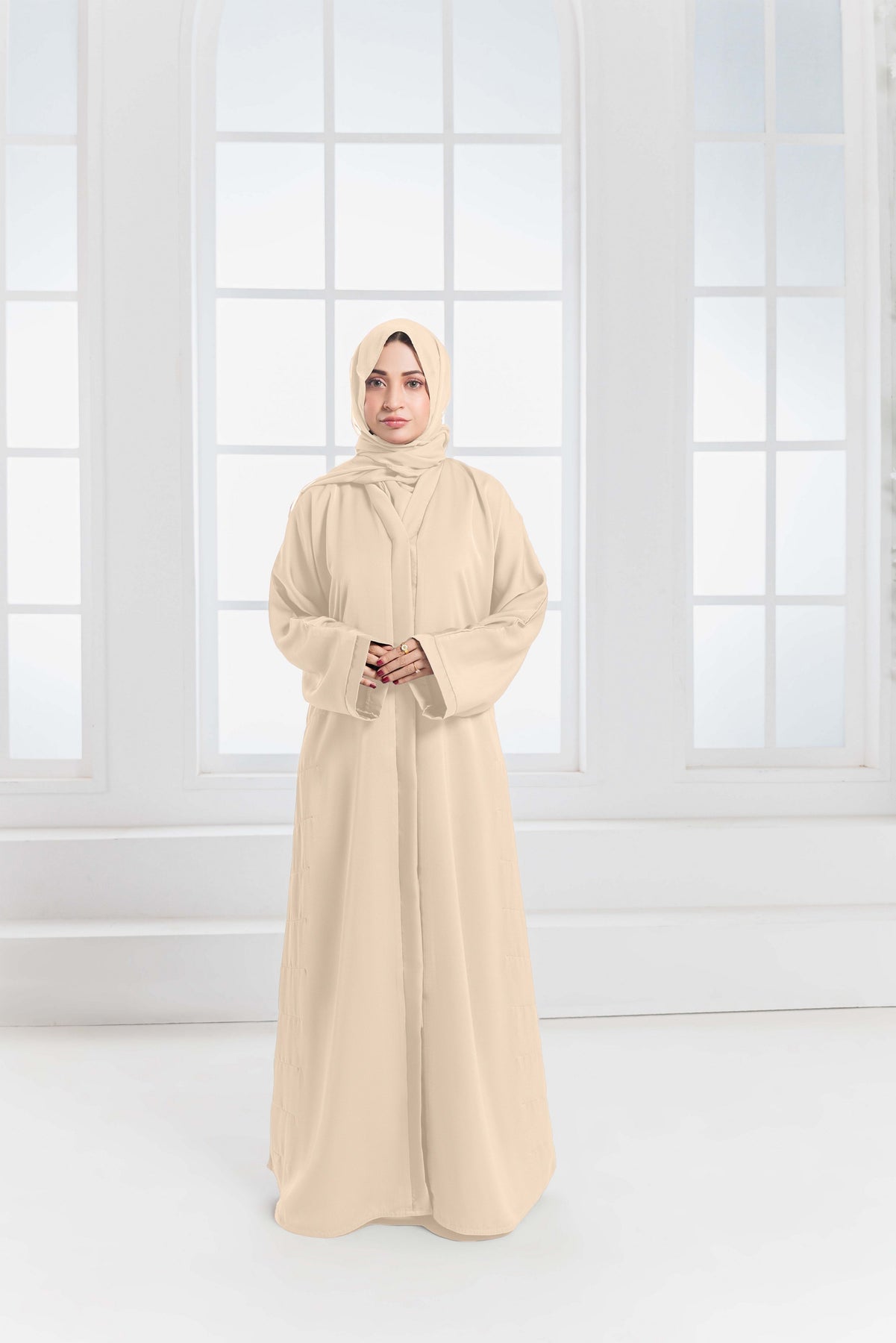 This beautifully designed abaya blends minimal elegance with timeless sophistication, making it a versatile staple for your wardrobe. Crafted from premium fabric, it ensures both comfort and style for everyday wear or special occasions.