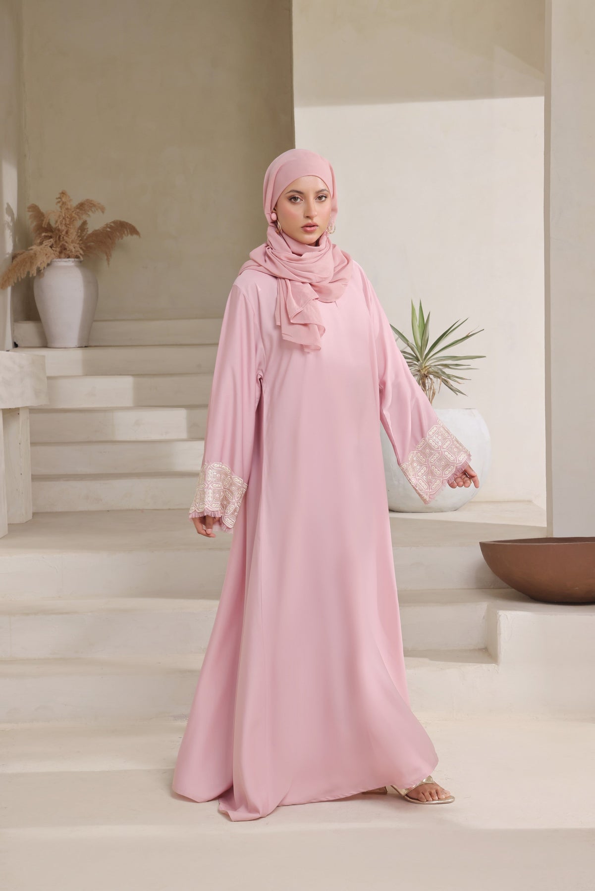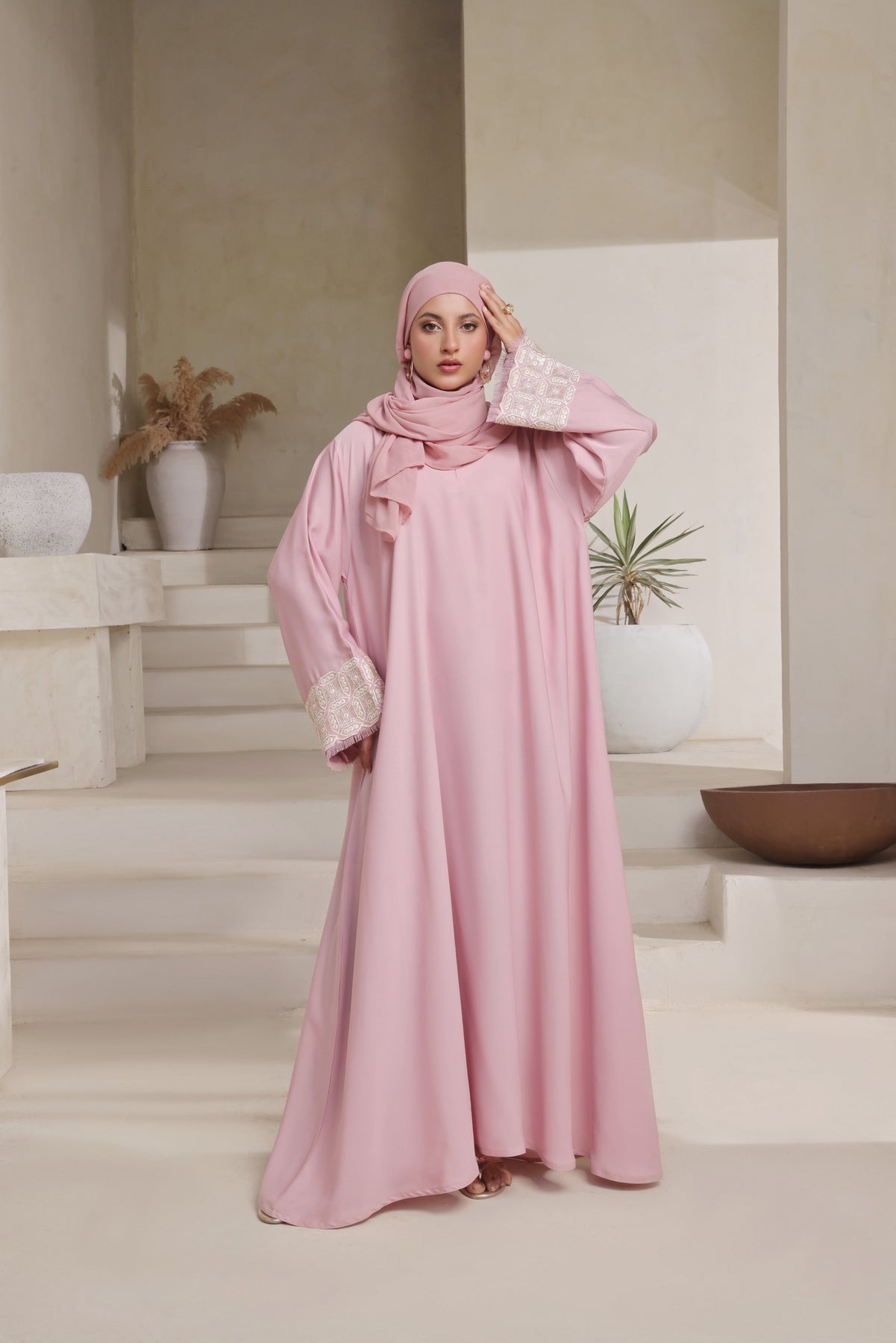 Step into timeless grace with the Blush Elegance Abaya โ€“ where everyday wear meets refined beauty.