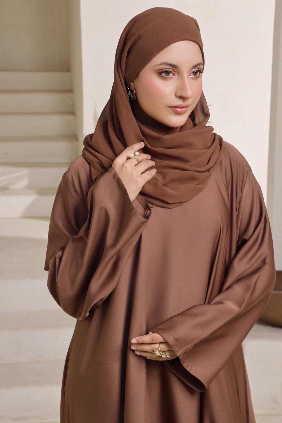 Classic simplicity meets everyday sophistication in the Hazel Flow Maxi Abaya. Designed with a flowing A-line silhouette, this abaya embraces a graceful charm that never goes out of style. The warm hazel brown tone enhances its earthy elegance, while the premium Nidha fabric ensures a soft, breathable fit for all-day comfort. Paired with a perfectly matching hijab, it’s a versatile choice for both casual days and special occasions.
