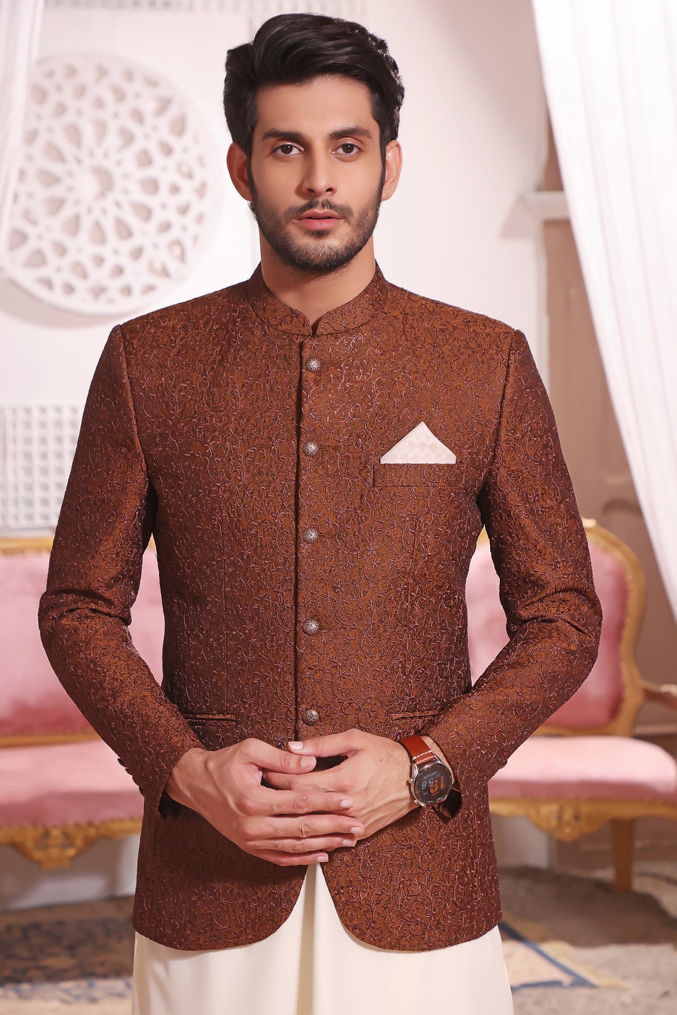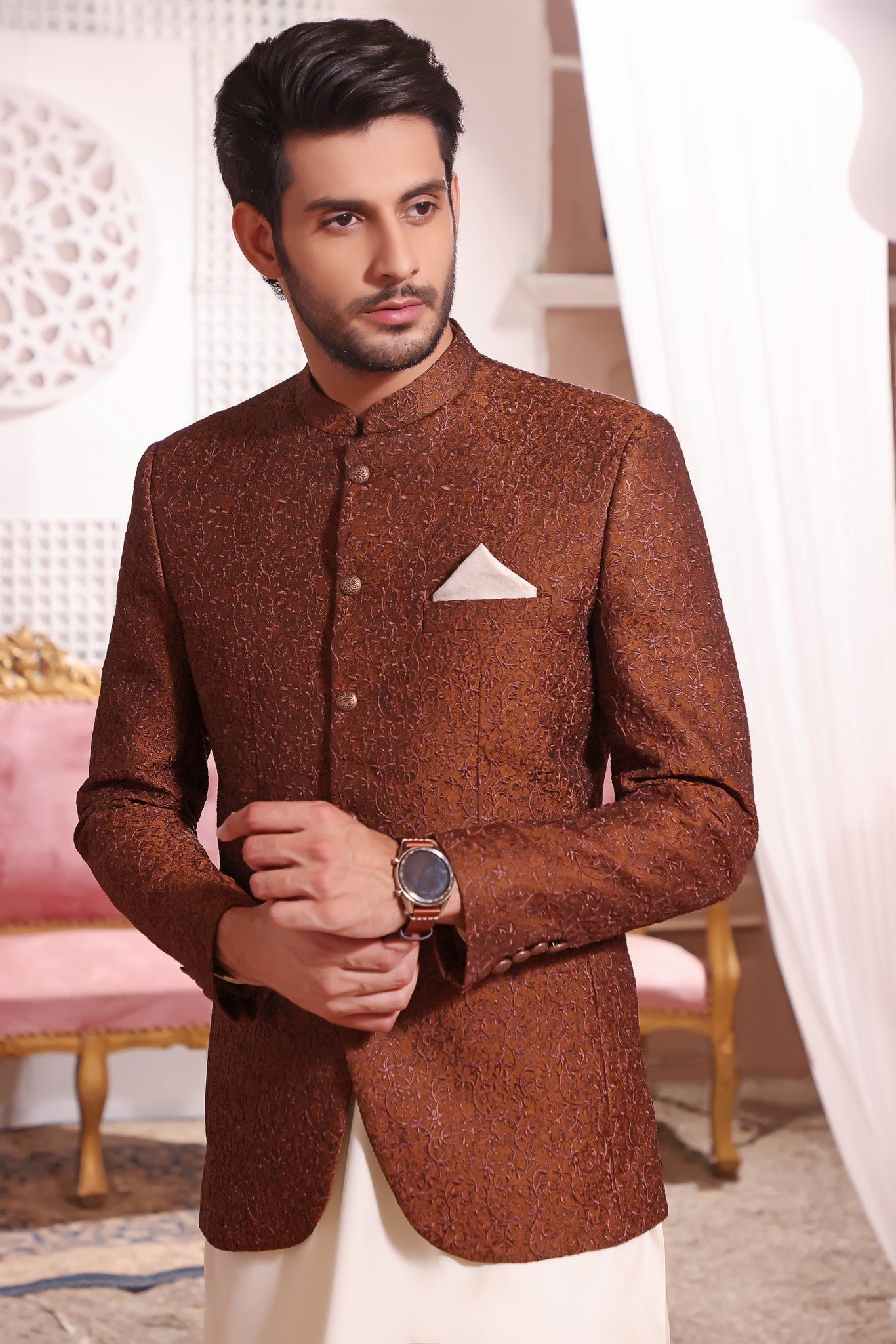 Men Formal Prince Coat with Banarsi Base and Computer Embroidery